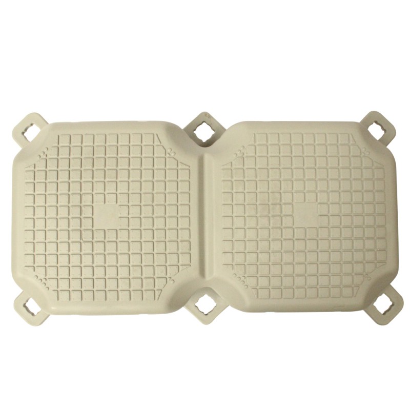 Están formados por cuatro lengüetas (situadas en los vértices) lo cual permite enlazarlo y unirlo con otros módulos para construir la plataforma. Este accesorio puede ser utilizado tanto en agua dulce como salada. Son totalmente flexible y funcional. Además, tienen una entrada de agua para conseguir una mejor flotabilidad encima del agua.