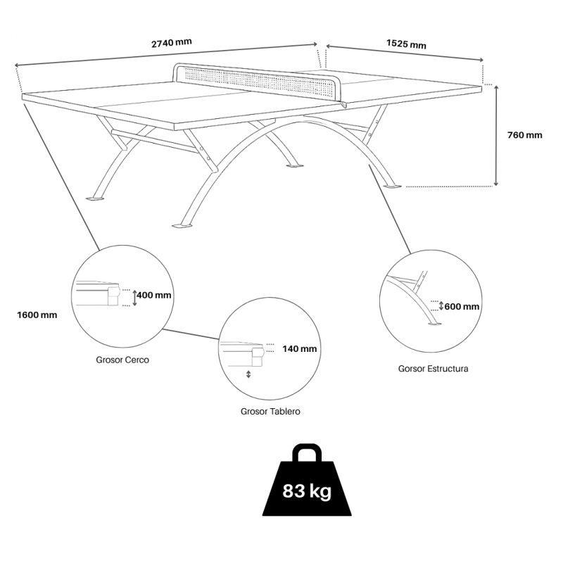 *Aún siendo mesas de ping pong para exterior y estar fabricadas por materiales que soportan su uso en la intemperie, el fabricante avisa que el tablero debe protegerse ante las temperaturas extremas y cambios de temperatura bruscos. El uso de funda y dejarla plegada hará que la vida útil de las mesa sea mucho más larga. Es muy importante que en caso de ralladas o golpes en la parte superior del tablero sean tratadas de inmediato, de no ser así, la humedad puede penetrar en su interior y provocar ampollamiento.