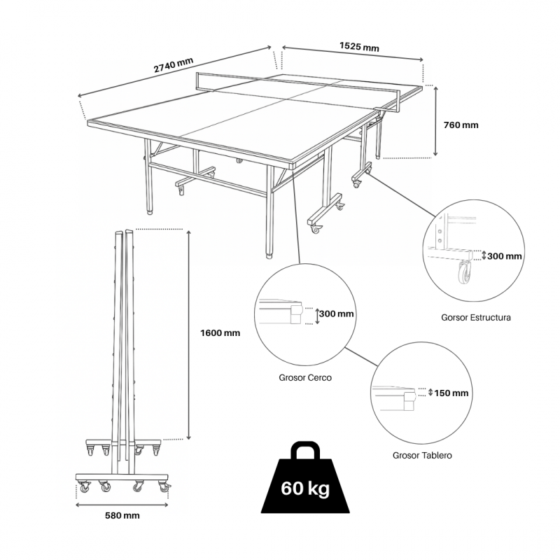 | Dimensiones | Tablero 274 x 152.5 x 76 cm |